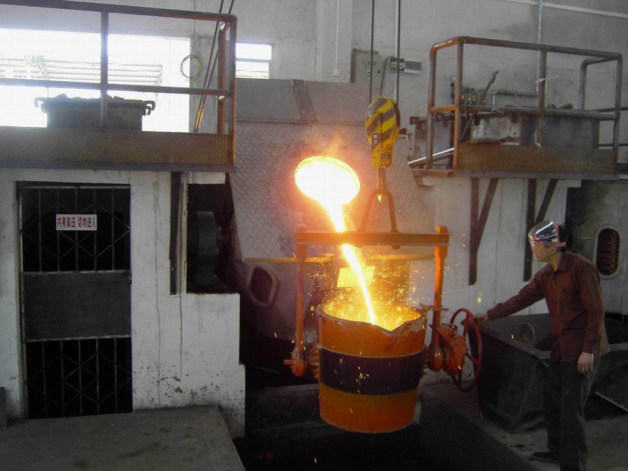 1250kW-2.0t鋼殼中頻熔煉爐設備出爐場景